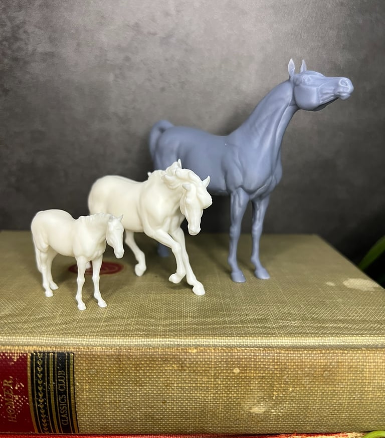 We're currently offering the following scales with the size approximations to an average horse. The general sizes may vary depending on the breed of horse (miniature horse vs draft) and the prices in each listing will reflect this. Most horse models will fall under the structure below.